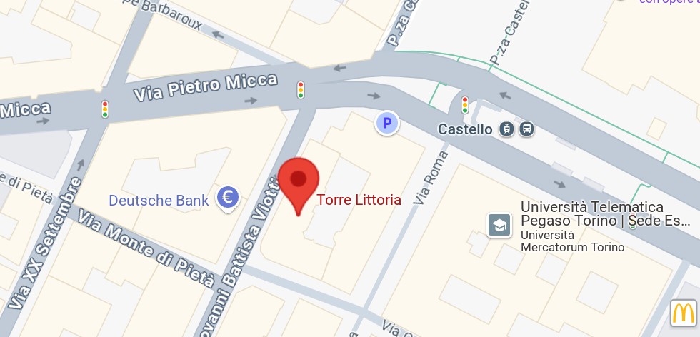 Parallelamente, la sede Legale ed Amministrativa risiede in una posizione di prestigio nel cuore istituzionale e professionale di Torino, in Via Monte di Pietà, 2. Questa ubicazione centrale sottolinea la nostra stabilità, la nostra trasparenza gestionale e la nostra vicinanza ai principali centri decisionali della città.